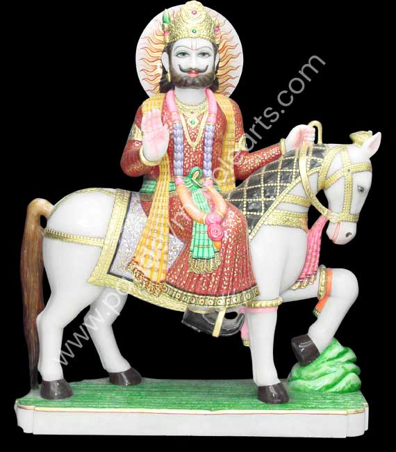 Baba Ramdev Ji is a relatively new God in the Hindu pantheon. He is a hindu folk deity of Gujarat and Rajasthan, India. He was a 14th century ruler, who have miraculous powers. He devoted his life to the poor people. He is worshipped by many social groups of India. He took samadhi in Ramdevra which is 10km away from pokhran in Rajasthan at the age of 33 years. We offer an exclusive collection of Marble Baba Ramdev Statue, Baba Ramdev Marble Statue, Baba Ramdev Statue and blessing of Baba Ramdev Murti intricately crafted in various themes and positions.